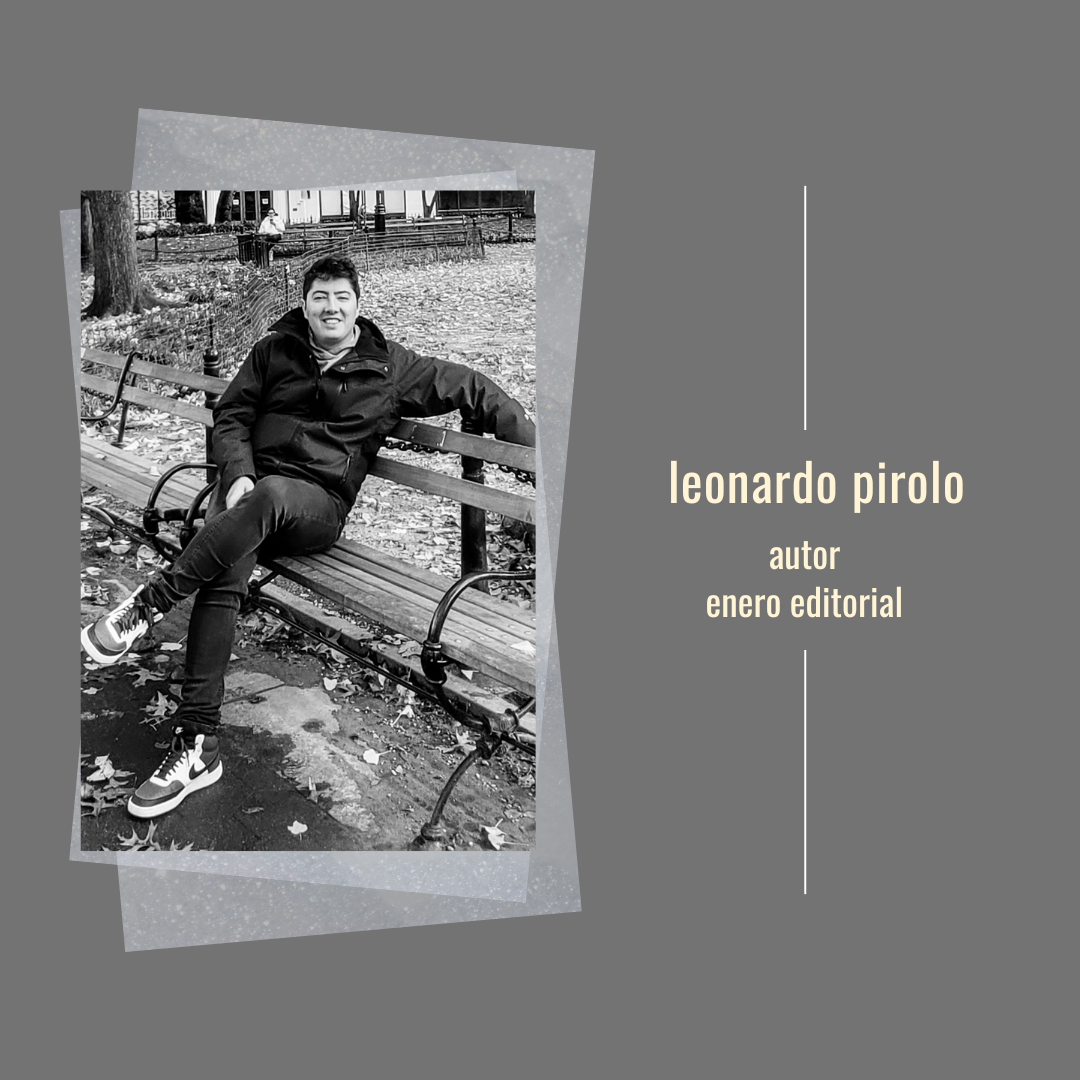 Buenos Aires, Argentina 1990. Abogado y escritor. Ha publicado cuentos y relatos cortos en revistas literarias de Argentina, México, Venezuela y en La Gazeta de Guatemala. Su cuento “Hasta la próxima vez” obtuvo la mención especial del Concurso APAIB 2020 y “Tan chicos” recibió la mención especial en el Concurso Haroldo Conti 2023 y fue publicado en la antología Otros muchos sucesos. En 2021 publicó su primer libro en formato fanzine, Habitación 206, con MeFlipa Ediciones. Actualmente se desempeña como abogado en finanzas corporativas y colabora con publicaciones en revistas literarias locales e internacionales. Los viejos lugares de antes es su primer libro de cuentos publicado.